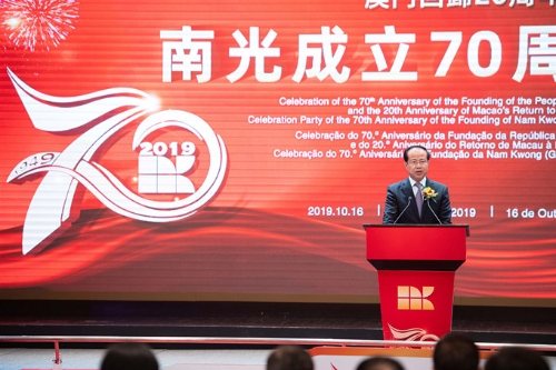 No dia 16 de outubro, o Grupo Nam Kwong realizou a “celebração do aniversário de 70 anos de criação da República Popular da China, o aniversário de 20 anos do retorno de Macau à China e o coquetel festivo dos 70 anos de criação da empresa Nam Kwong”, além disso, fez a solene publicação da “Estratégia de Desenvolvimento e Reforma do Grupo Nam Kwong (2020-2030)”, apresentando o conceito de cooperação e desenvolvimento “Nam Kwong +”, o qual está amplamente associado com empresas locais de Macau, empresas nacionais e estrangeiras para desenvolvimento mútuo.